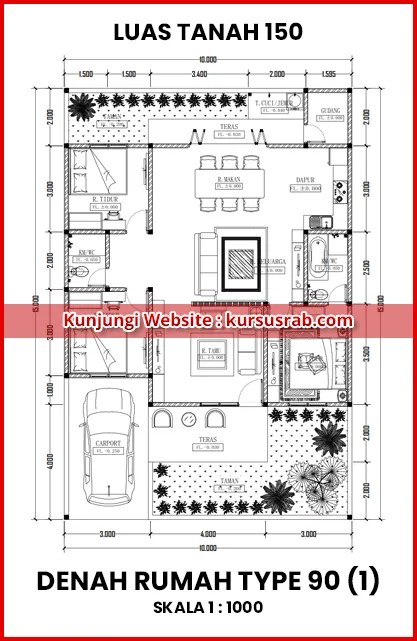 Gambar denah rumah dengan type 90/150