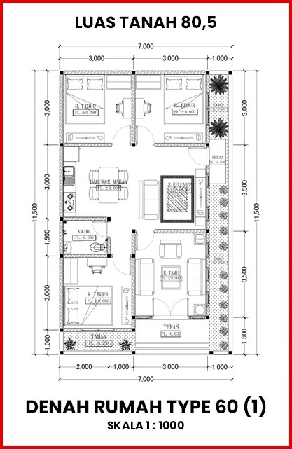 Gambar denah rumah dengan type 60/80.5