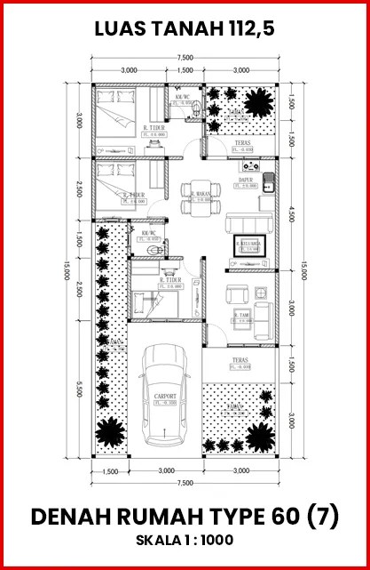Kini kamu bisa Download Denah Rumah Type 60 Kode 07 secara gratis!